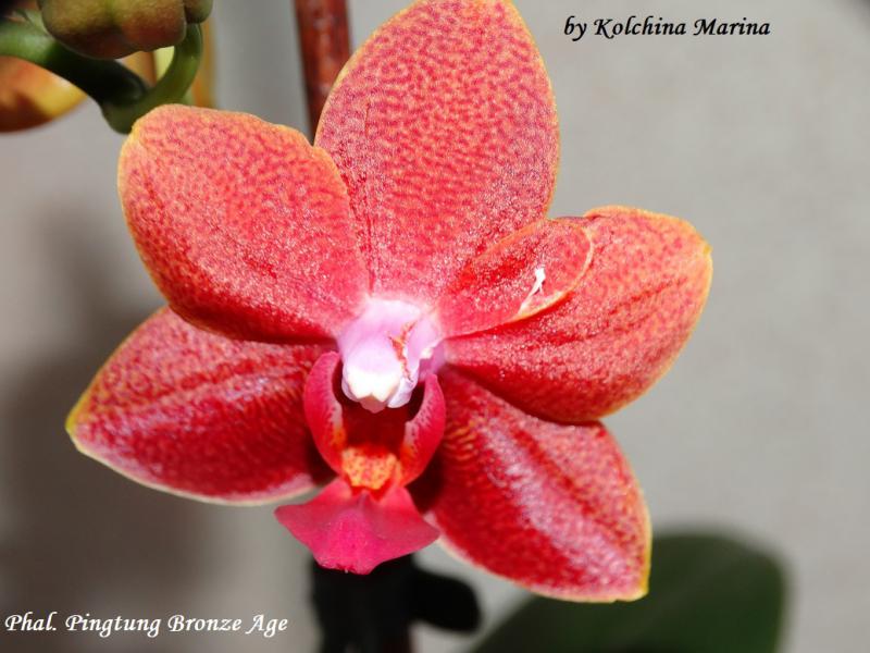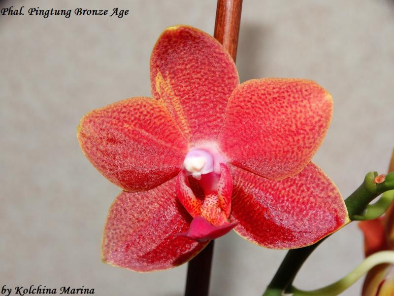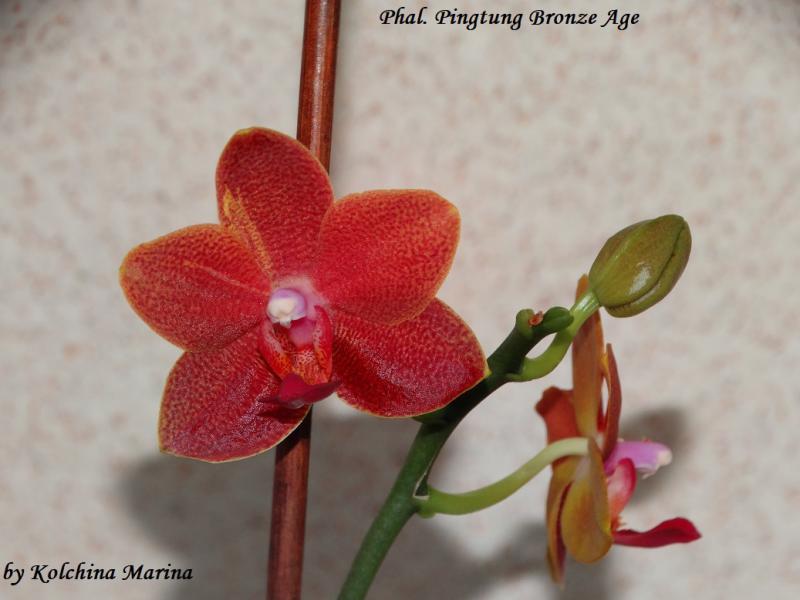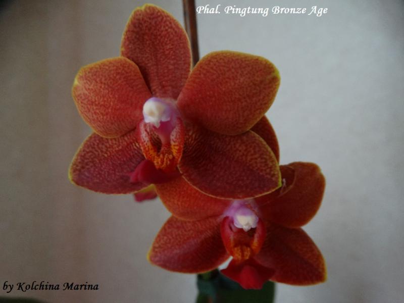 И первое цветение Phal. Pingtung Bronze Age получен из спецпредложения- 03/06/2018,цветы небольшие 4 см,очень яркие все в блестках,на солнце весь переливается,при приглушенном освещение смотрится бархатным ,очень ароматный -аромат резковат цитрус и какие то пряные ноты гвоздики что ли .Первый цветок при открытие повредился ,лепесток прилип к колонке ,пришлось помочь,видно на фото и их тоже много:blush::