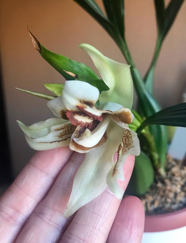 Зацвёла с первого же роста, после пересадки. Цветочек правда перевернулся при открытии, но красив. А как пахнет....