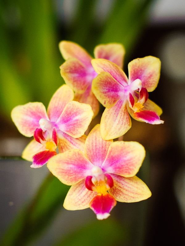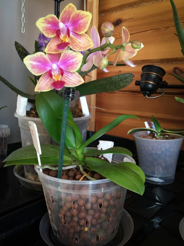 спасибо всем за добрые слова, но я заметила, что есть просто такие удачные фаленопсисы, которые обожают цвести, у меня это Doritaenopsis Liu's Sakura 'KF 4N, Phalaenopsis equestris var. ilocos, Phalaenopsis Elegant Wibi Soerjadi, Phalaenopsis Joy Fairy Tale - это те, кто цветет "богато", а не 2 цветочка, дорастили, еще два (есть у меня и такие любители "удочек"… Doritaenopsis Purple Martin var. blu - 7 цветочков за раз летом, осенью дует тот же цветонос но по 2-3 цветка, Phalaenopsis Mini Mark "Maria Theresa" - тоже любитель после 2 месяцев оставить удочку с 4 цветочками и доращивать до бесконечности)