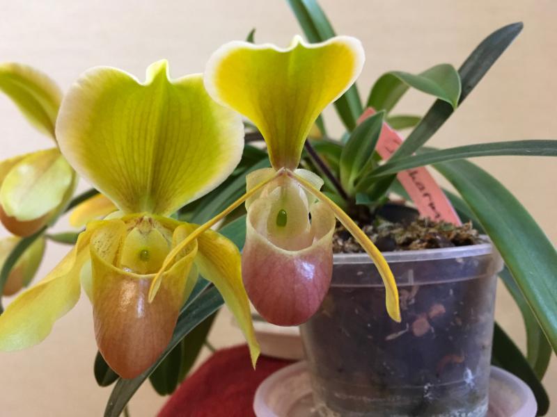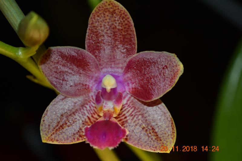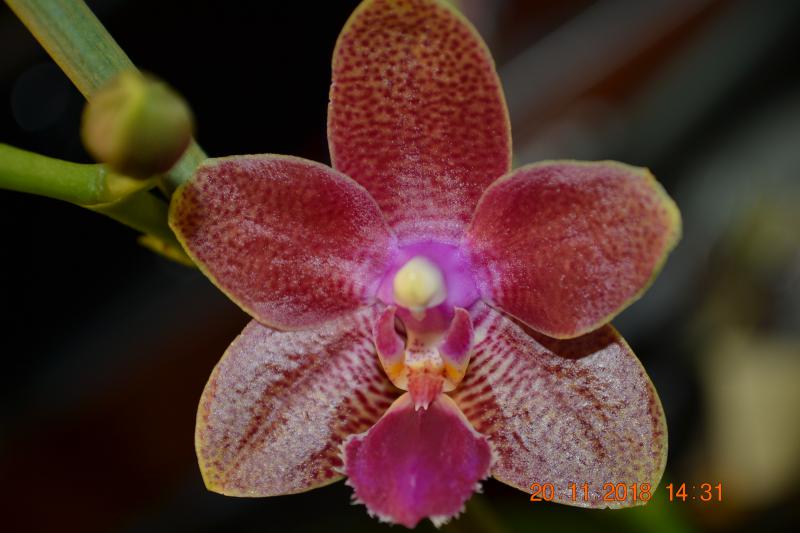 phal. Joy spring tina Anaconda x phal. Yaphon red Benz, цветение первое, само растение небольшое, цветок плотный, восковый, около 4 см, запаха пока нет, впечатления протворечивые