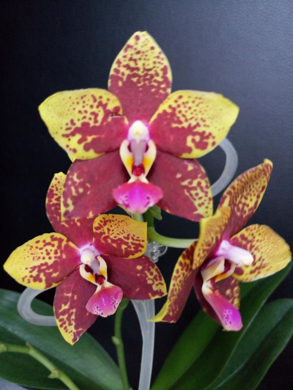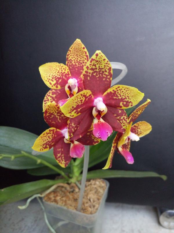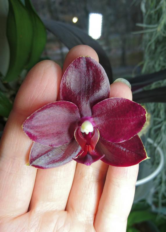 Фото без вспышки, в 20 см от цветка лампа холодного белого света, поэтому бликует. Цает абсолютно верный. Темное бордо с еще более темными пятнышками.Скажите, а цвет передан верно? Фото со вспышкой? Проблем с фотографированием не было? А то я вот такой цвет никак не могла поймать на фото...
