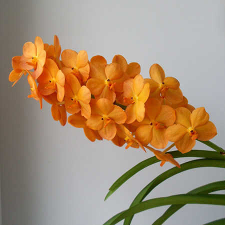 Vanda Natcha Magic Orange засушила часть цветков из-за нехватки света.