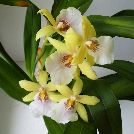 Miltonia Sunset стала моей четвёртой неудачной попыткой. Моей заслуги в её цветении нет, она появилась у меня с двумя растущими цветоносами. Шикарный, сильный, как мне казалось, куст из одиннадцати бульб, тем не менее с признаками болезни…