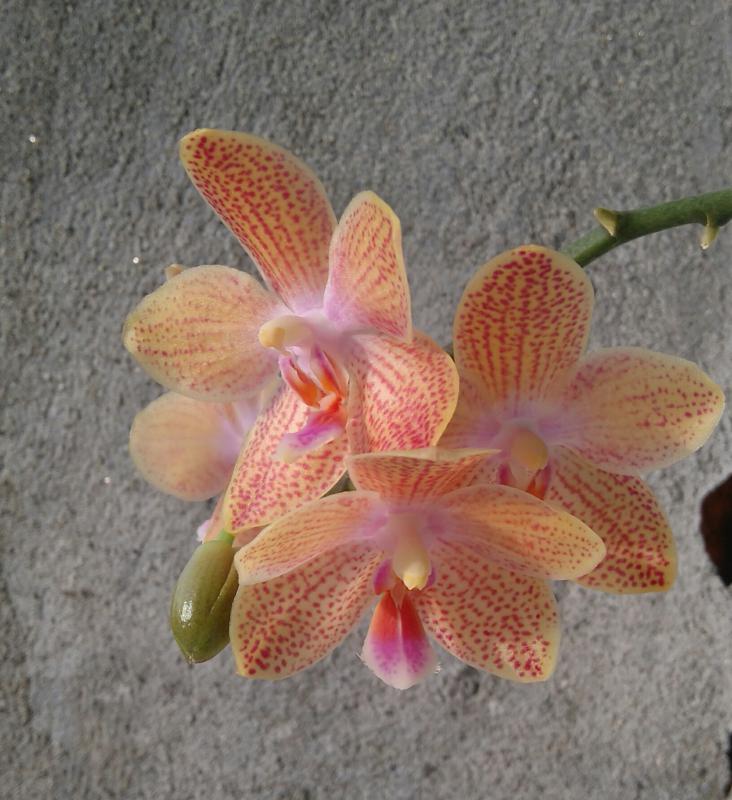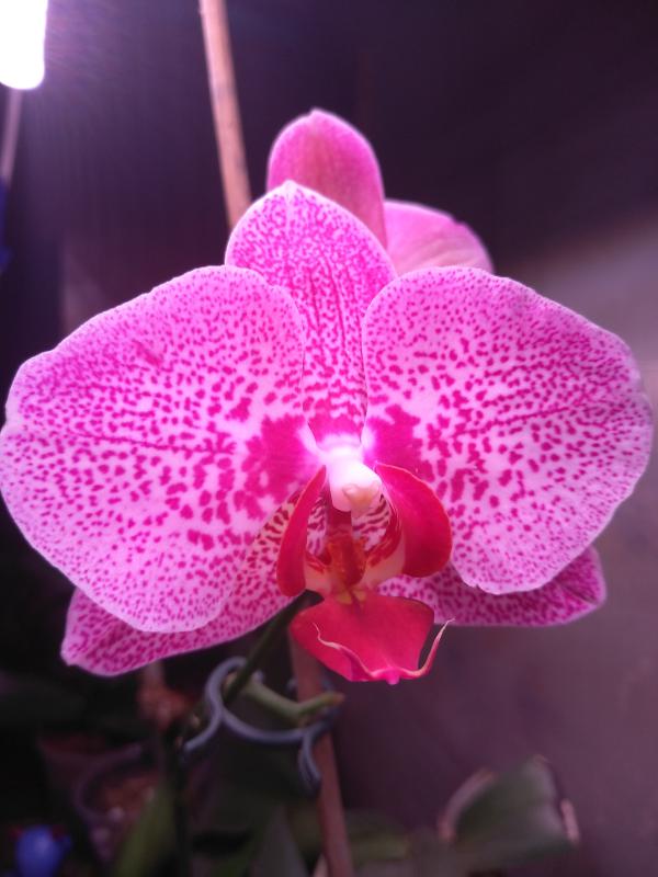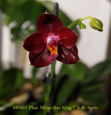 MO307 Phal. Mituo Sun King \' S-R- Spots из спецпредложения. Растение у меня уже два года, цветёт охотно. Размер цветка 5 см, листа 17 см, цветонос 19 см, запаха нет.