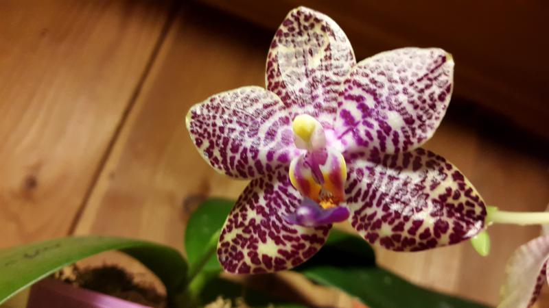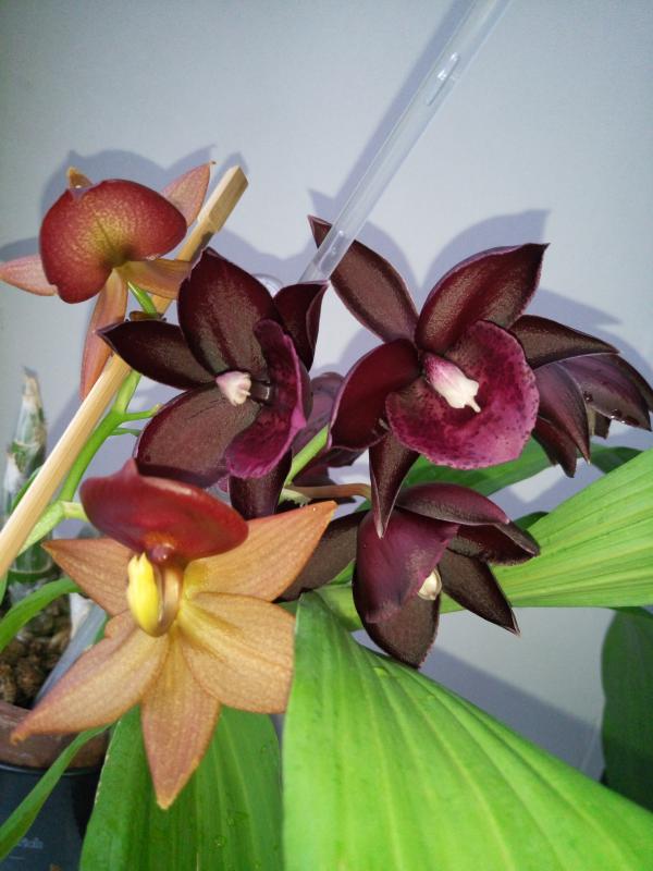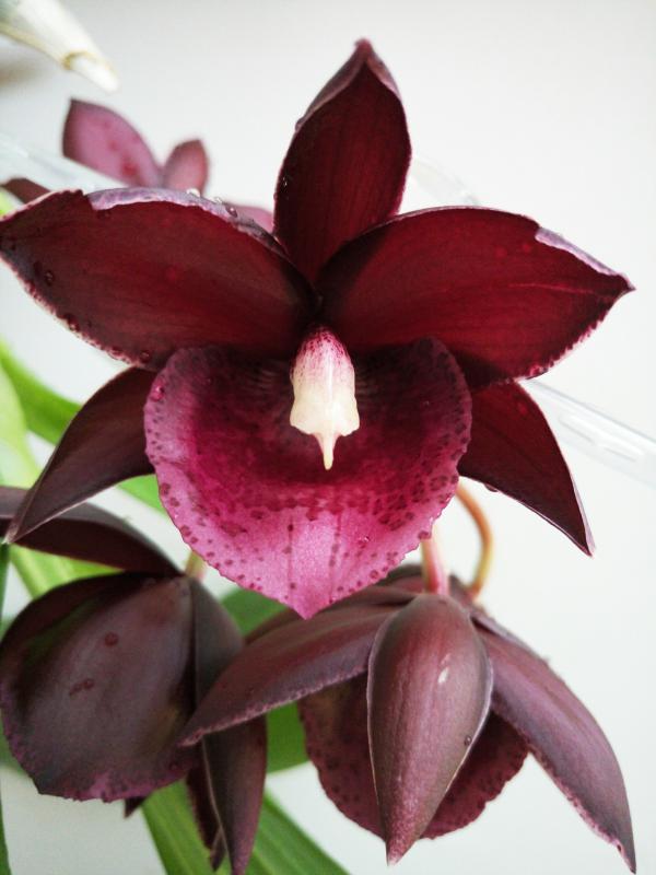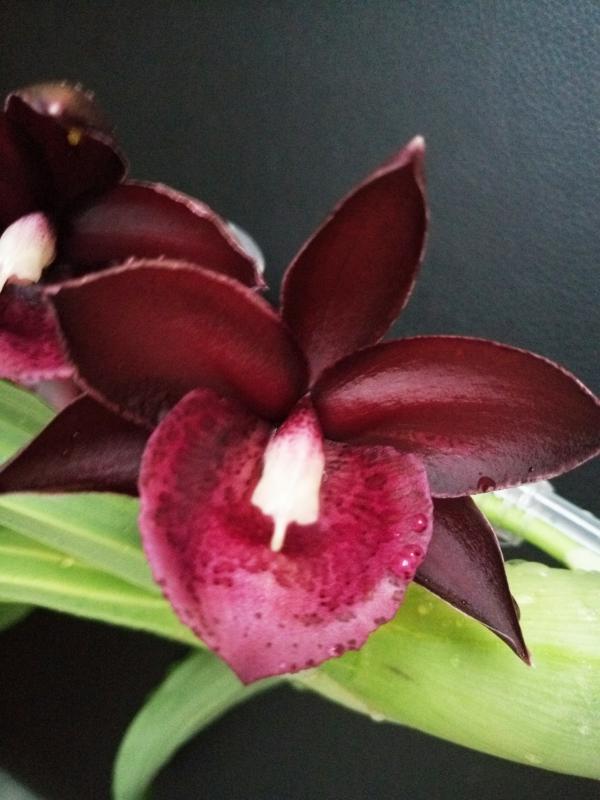 Был доставлен в ноябре 2017 года. Совершенно неприхотливый гибрид, быстро адаптировался и этим летом выпустил два цветоноса. Цветок 4 см, на цветоносе длиной 17 см 3 цветочка, самый большой лист 23 см. У цветка запаха нет. Растение не мелкое, но очень красивое! Конечно, я ожидала немного другое цветение, хотелось полосок или крапинок на цветке, но ничего, теперь и у меня есть своя чёрная жемчужина!
