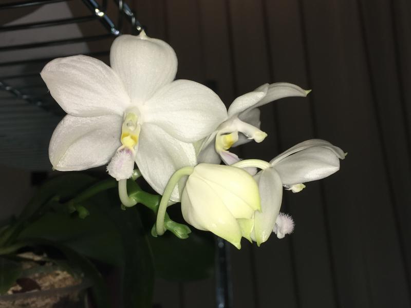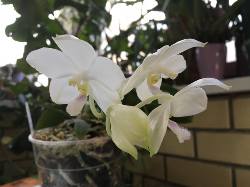 Это второе с нового цветоноса (старый спит), в этот раз будет минимум 4 цветочка (в прошлый было два), и цветонос пытается ветвиться.... очень нежный запах, с абрикосовыми нотками..