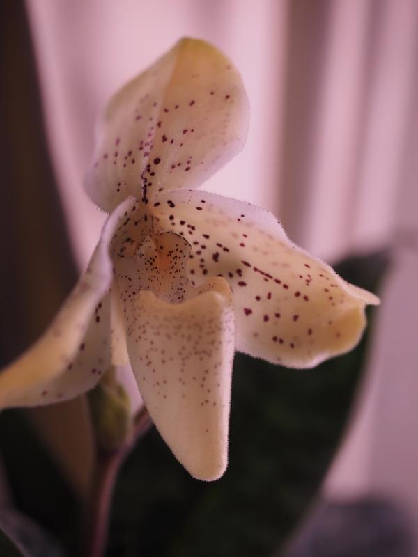 Хотя, если по-честному, моей заслуги тут никакой, девочка справилась сама, вырастив два чехла под зиму с полным отсутствием подсветки. Организовать ей освещение получилось только к самому началу цветения, когда уже бутоны показались из чехлов.