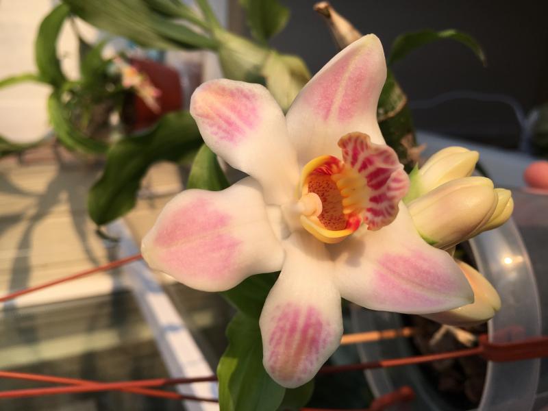 Продолжает цвести Chienlung Red Parrot, аромат смеси травы и цветов. Сейчас одновременно 2 цветка, 5,5 см, дует третий бутон. Получен с аукциона во время охоты.