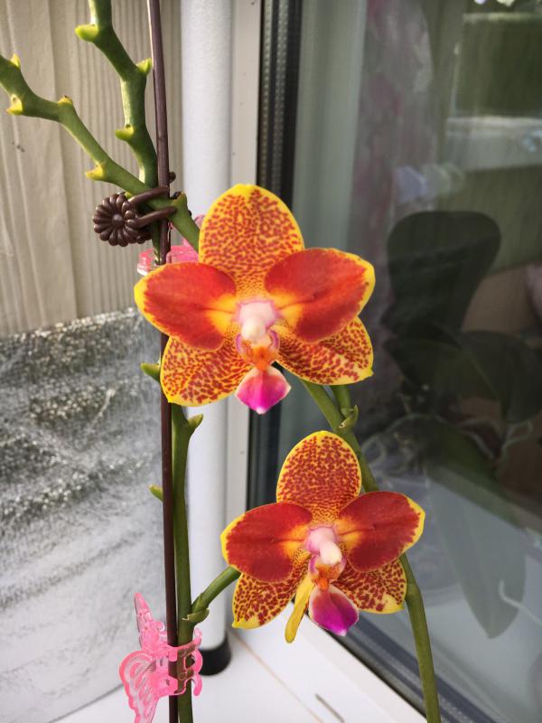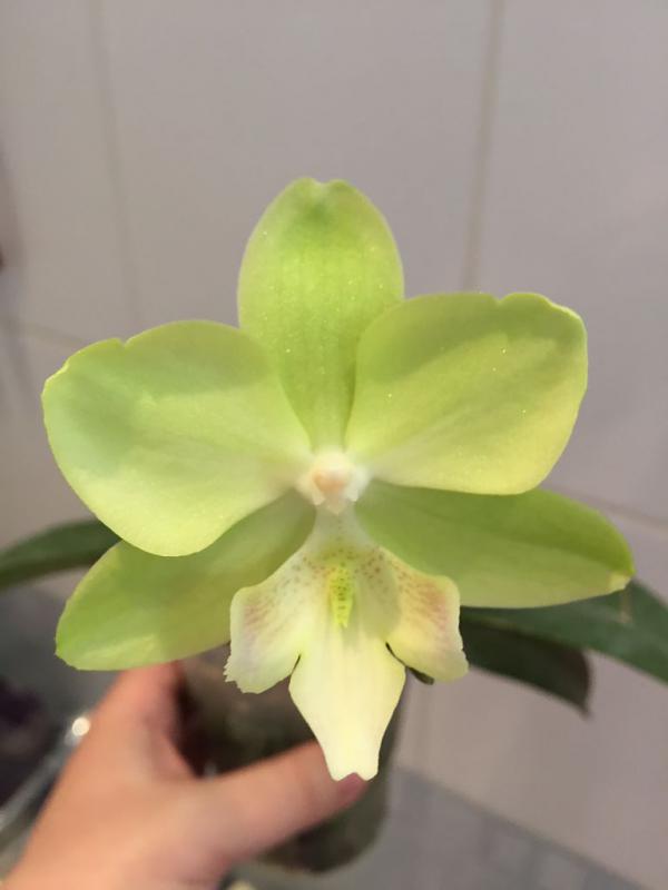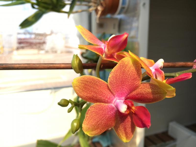 А это P. Golden Sean Baby Mutation, из спецпредложения. Пришел в октябре с цветоносом, потом стал наращивать по паре цветочков, и на подходе еще один цветонос), таким образом цветет с октября прошлого года)