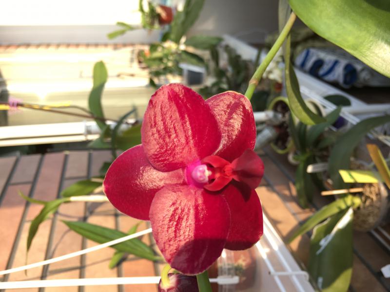Sogo Yalin x Sogo berry, получен из Шайнинга осенью 2017, цветок около 3 см, без аромата. Очень яркий, свекольного цвета.