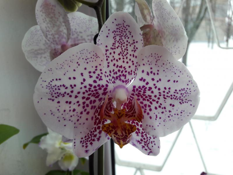 Первое цветение, аромата пока нет, второй день только как раскрылась. Мохнатая губа micholitzii очаровательна, его же "фарфоровость", а вот bellina почти и не просматривается - нет аромата и характерного "румянца". Хотя может альбу использовали? Форма вроде похожа. "Точечки" наводят на мысли о тетрасписе :) Посмотрю, как дальше цвести будет. Мне всё равно нравится!