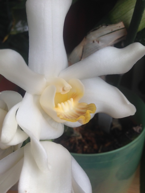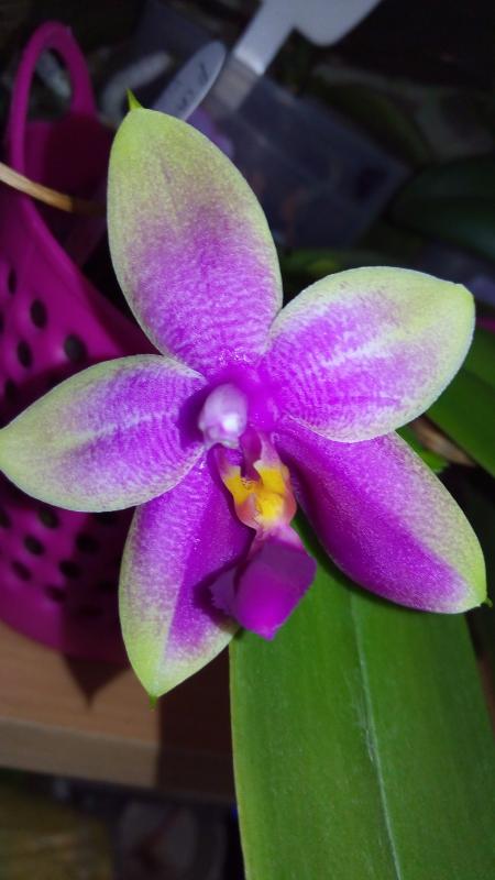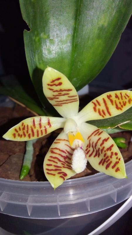 Самая-самая, Paph. Sunshine GlorySnow Princess BMTPS x ang-thong (HS), первое цветение, получен подростком в 2015г.