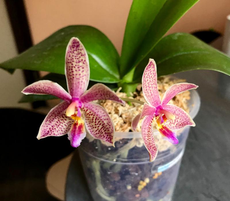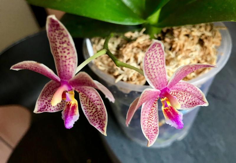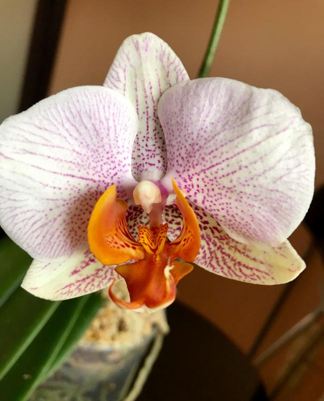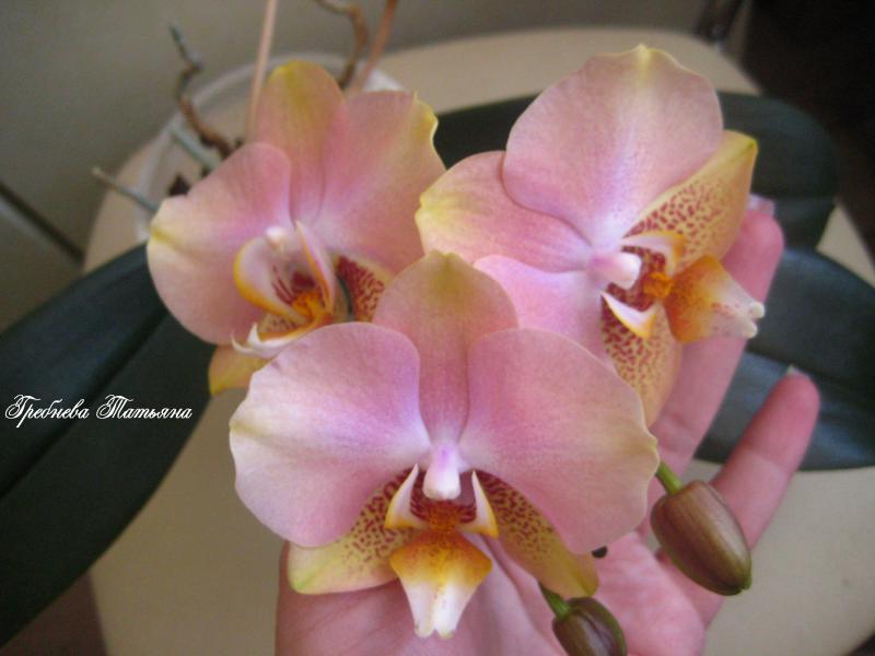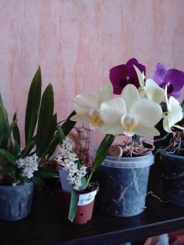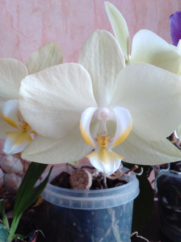 Голландцами сейчас уже никого не удивишь, но все равно почти у каждого в коллекции есть нежно любимый фаленопсис, купленный в каком-нибудь Ашане или Оби. У меня таких несколько, и одна из них вот эта симпатичная малышка. У нее много достоинств: непрекращающееся цветение, нарастающий цветонос (это ее же лопасти раскинуты на заднем плане), но главное - сногсшибательный аромат сирени. По утрам он просто валит с ног и по мощности равен запаху Лиодоры.