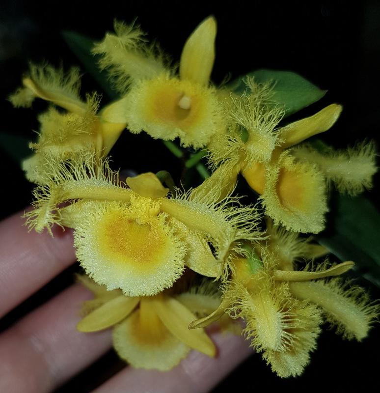 Желтый пушистый салют - Dendrobium harveyanum от Schwerter, получен в июле 2016, мое первое домашнее цветение