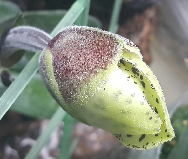 Paphiopedilum niveum x bellatulum от Orchideengarten Karge, запаха нет, с фотками проблема - "толстые щечки на тонком стебельке"... а именно - цветок с цветоносом намного тяжелее чем сама растень, поэтому тяжко фоткать...