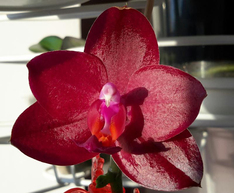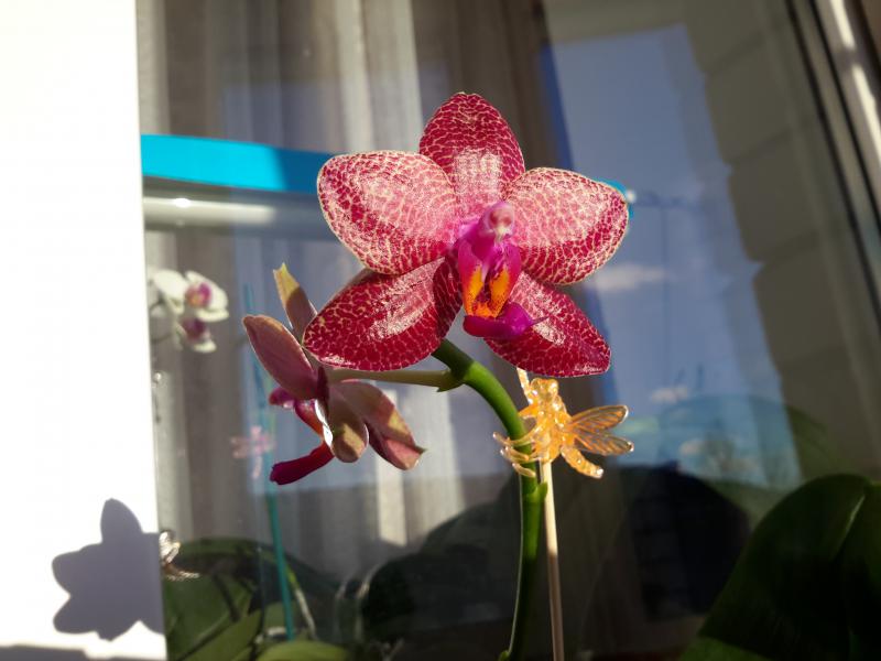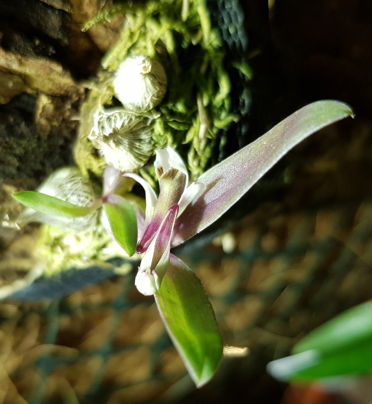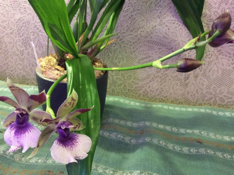 Dryadella edwaldii от Karge, в связи с дефицитом места слишком сильно "загорела"... но цветет, зайка...