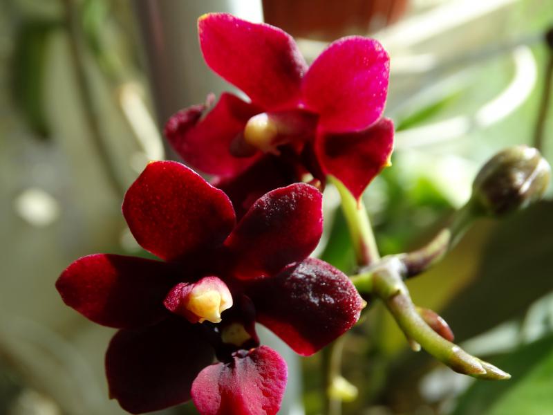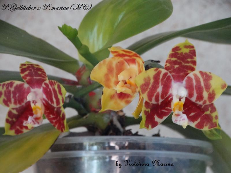 бедняга P.Gelblieber x P.mariae(MC) еле оправился от клеща ,да еще на покусы грибок сел,но сейчас вроде бы все в порядке,зацвел со старого цветоноса и выпустил новый,один цветок бледный раскрылся уже давно и уже отцветает