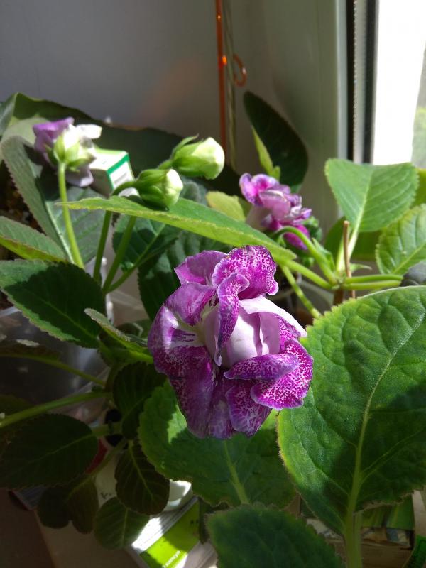 Распускается моя "глоксиниевая полянка": цветок Шаганэ без прямых солнечных лучей более насышенного цвета с "искорками" , раскрылся ЕС- РАДУЖНАЯ СФЕРА , АЛЕНЬКИЙ ЦВЕТОЧЕК. Скоро откроется ЕС- СОЗВЕЗДИЕ ЛЮБВИ (бутон "смотрит " в окно). ПРИЯТНОГО ПРОСМОТРА!