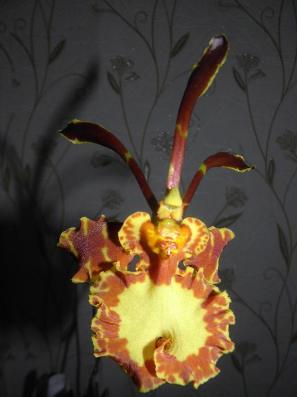 В уходе без проблемный, как все онцидиумные, цветет у меня уже второй год, практически не переставая, сейчас гонит второй цветонос, размер цветка 10х12