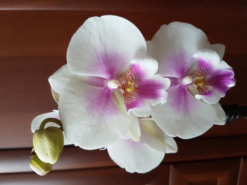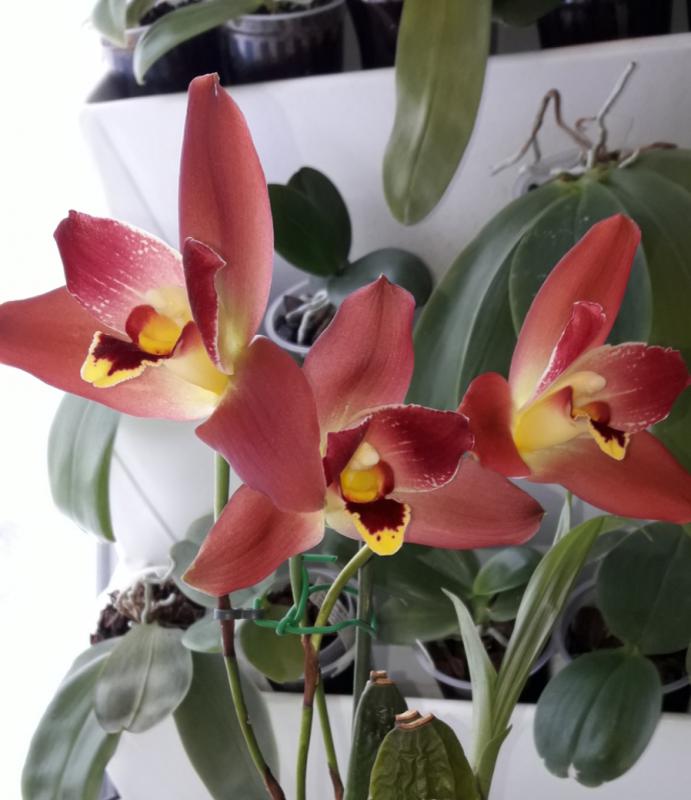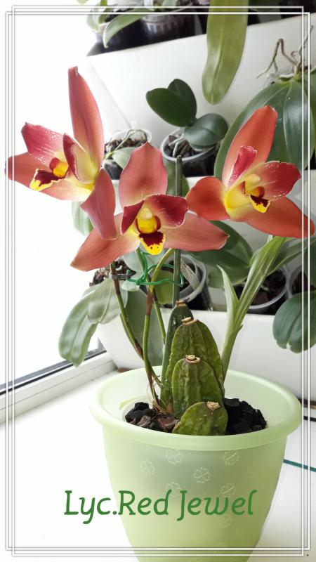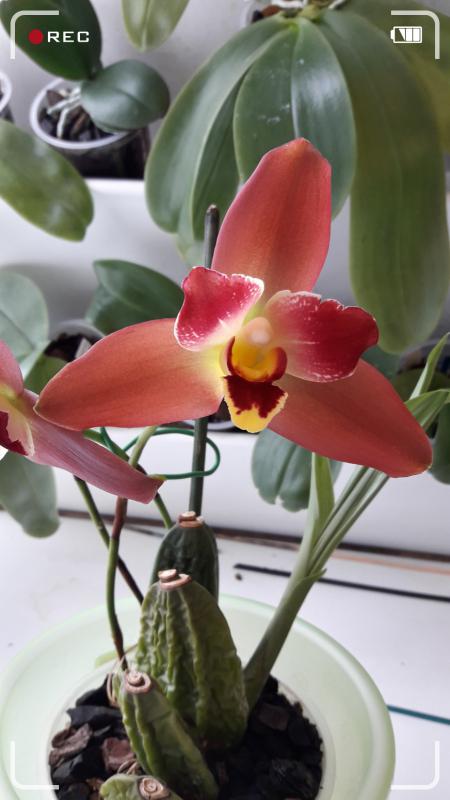 Получен от Mikiorchid в августе 2016 года. Сразу же отсушил все корни, но очень быстро нарастил новые. Был поделен на 2 растения. Оба одновременно дали цветоносы и одновременно зацвели. Второй кустик уехал к новому хозяину, а этот радовал меня почти месяц.