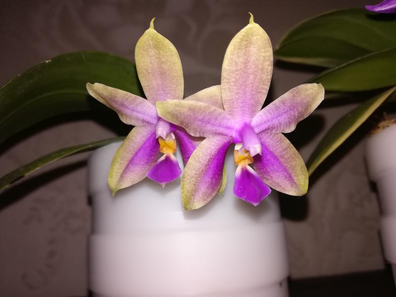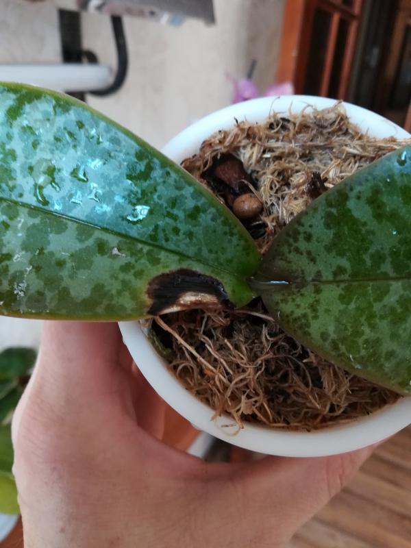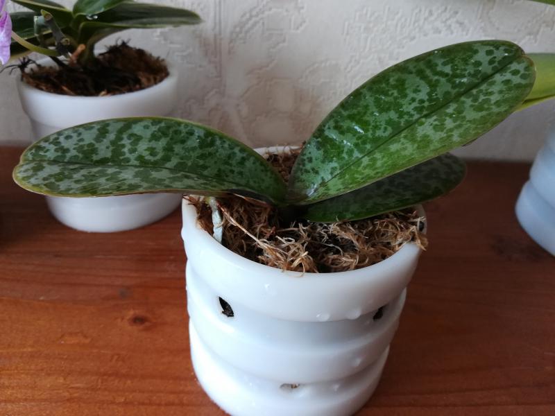 Phal. stuartiana. У меня второй год, поставщика не помню, если очень нужно, пороюсь в заказах. Пересажен недавно. Пятно на листе - весенний ожог, жить не мешает. Цена 600 руб.