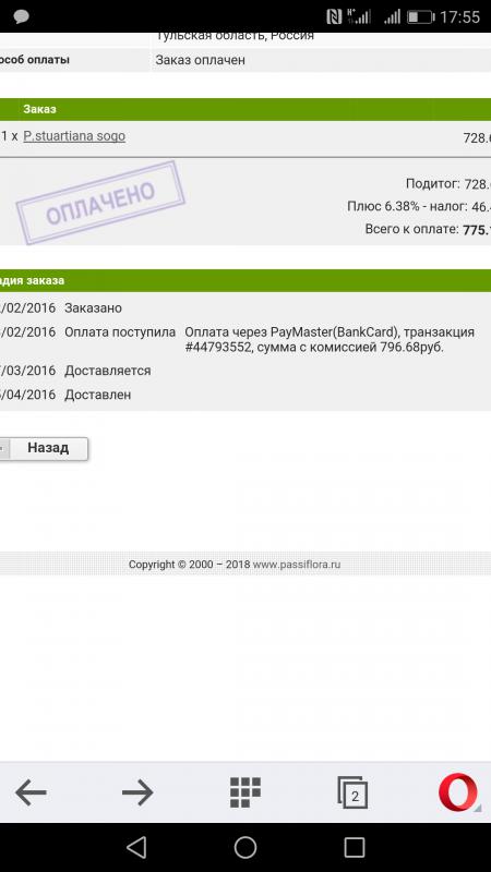 У меня третий год, получала от Надежды из наличия, пришло два растения в горшке. В пересадке не нуждается, цвел, цветение моё. Есть в каталоге https://passiflora.ru/product_info.php/cPath/2520/products_id/319259