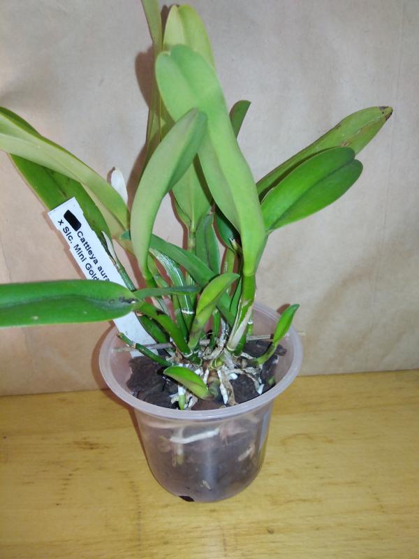 4. Catt. aurantiaca x slc. Mini Gold "Corona" Много бульб, растут три молодых роста, один с чехлом. 1500р