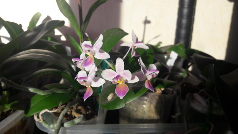 Ох, а я только собралась просить рассказать, как цветения добились! Моя растет колосится, а зацвести - фигушки... Ваш подарочек - отпад!!!:super::super::super:Cattleya schilleriana/цветение не моё, вчера подарили с цветами