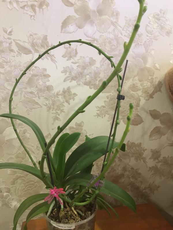 1,5м!?? да Вы что! У меня около 30 см пока, ну еще немного вытянется в процессе. Стоит на юго-восточном окне,загороженном деревьями. Солнце попадает немного, может час до обеда. Любит повлажнее.Цветонос почти полтора метра вырос,