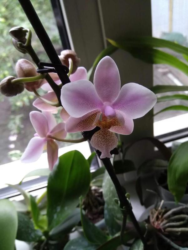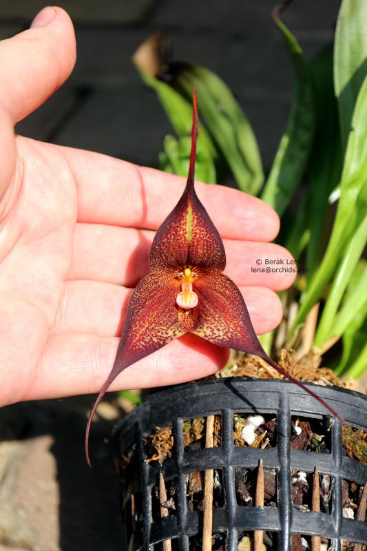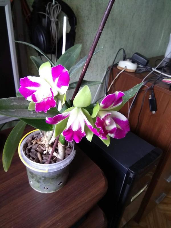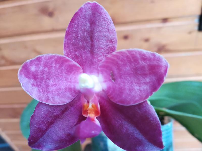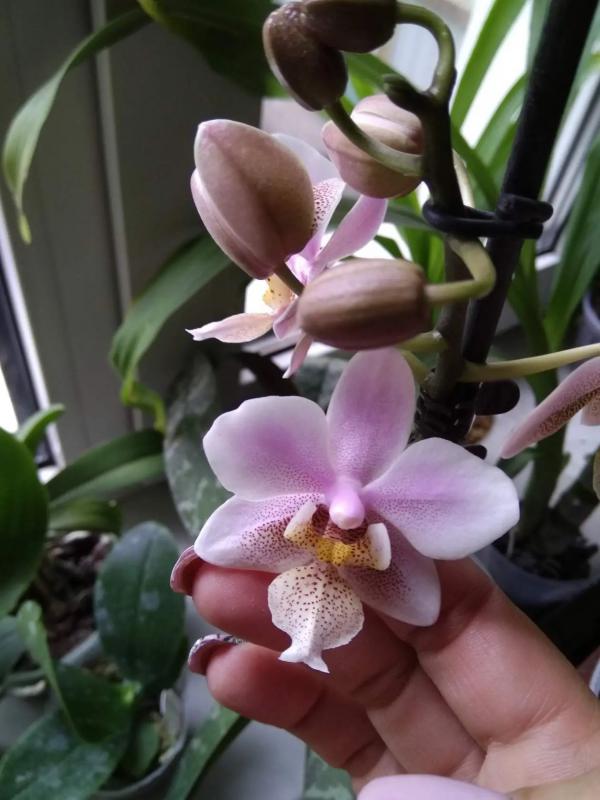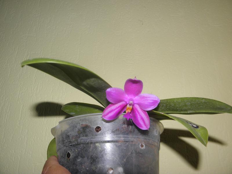 Цветение первое, цветочек один, 6 см. Кончик губы в реальности более малиновый.