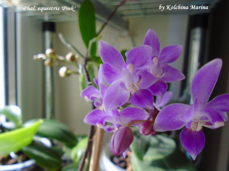 и Phal. equestris 'Pink' от Mikiorchid у меня второе цветение ,первое зимнее не показывала так как было всего 2 цветка таких малюсеньких на длинной удочке цветоноса ,на ней быстро вырастил детку она сейчас тоже с цветоносом, а сейчас уже побольше цветов , похоже на веточку сирени