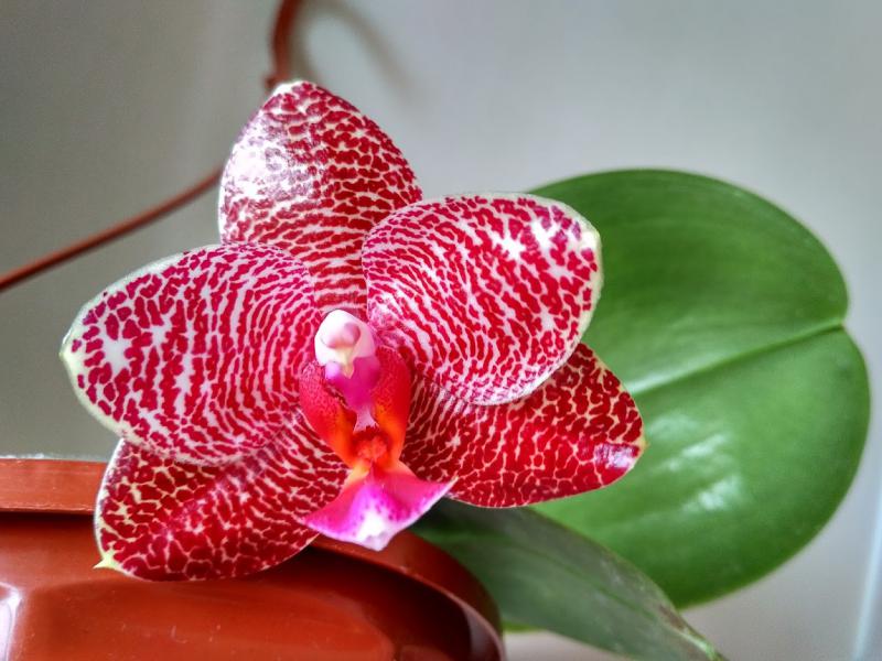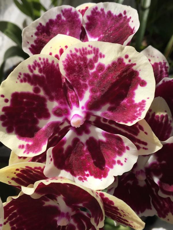Цветет Phal.Be Tris X equestris , должен был цвести бабочкой вот так https://passiflora.ru/product_info.php/products_id/326519 из спецпредложения 29314,это его второе цветение ,чуда не произошло бабочкой не стал, но подкупает гроздью цветов на достаточно маленьком растении ,цветы держутся долго ,плотные размер 5,3 см, жду аромат в том году был ,где то недели через 2 от начала цветения