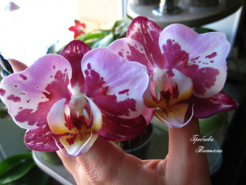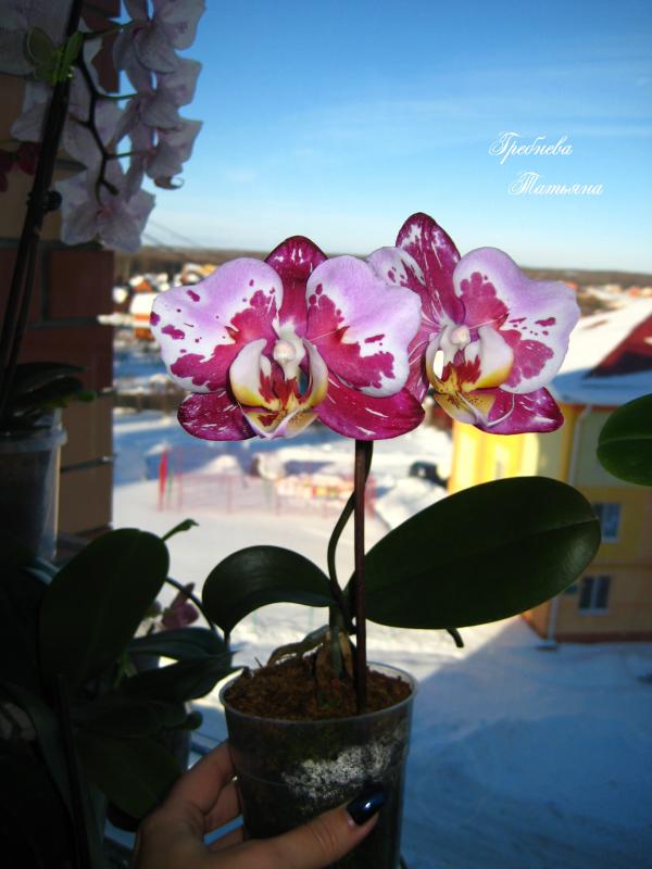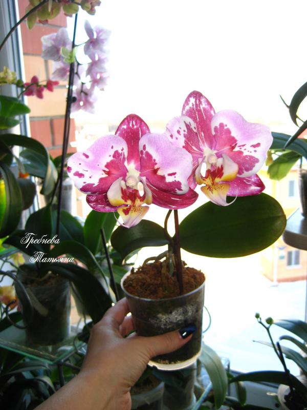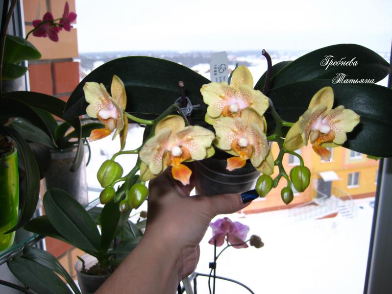 Расцветает Hi-Shin Sun Beauty от Мики. Второе домашнее цветение, на этот раз очень длинный цветонос и крупные цветы ( не меньше 10 см в ширину)Посмотреть вложение 192917