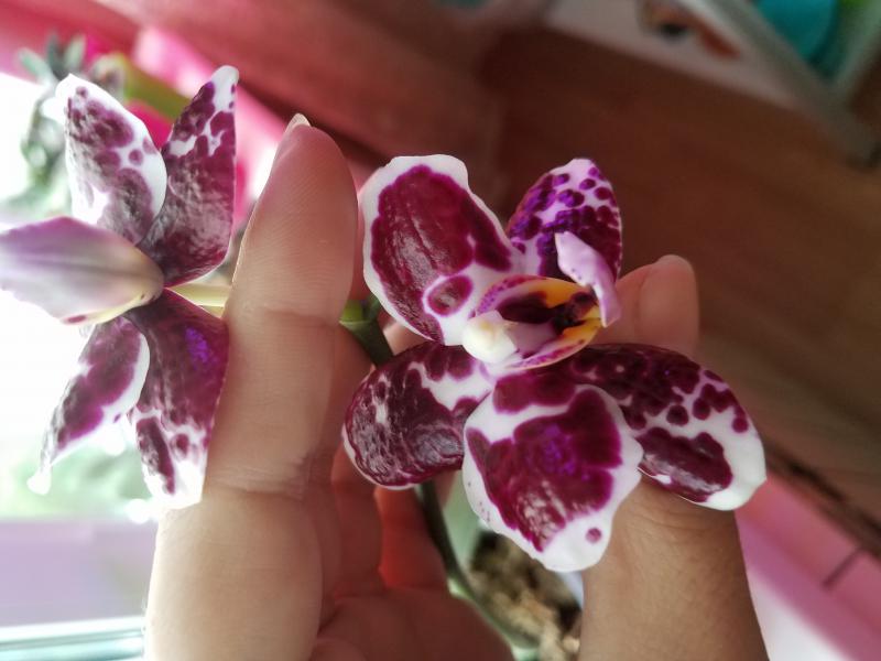 Фото не способно передать эти переливы цвета. Цвет похож на призму или голограмму. Очень привлекательный и цвести стал сразу же, быстро вырастил цветонос и раскрыл бутон. Я рада.