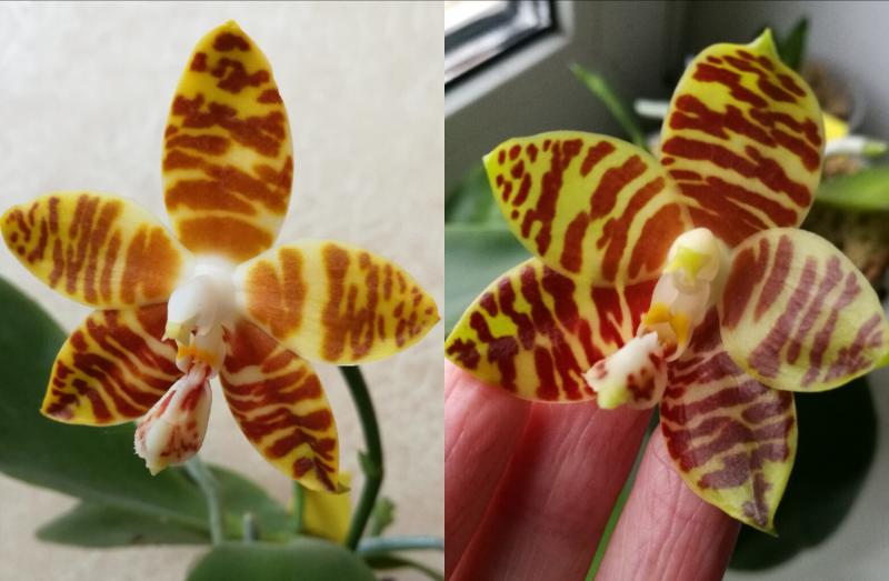 А phal. Schilleriana Pink Butterfly совсем молодое, ранее не цвело. Соответственно, у шиллерианы MSH более мощный разветвленный цветонос с бOльшим количеством цветов.