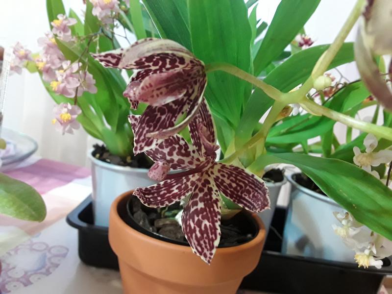У меня тоже много лет назад погибали, но в этот раз и растение хорошее попалось 3 бульбы) и с корнями особых проблем не было. После магазинного цветения пересадила в этот высокий горшок. Снизу много лавы в качестве дренажа, субстрат-мелкая орхиата, удо-осмокот. Полив частый, раза в два чаще, чем фаленопсисы, но из-за дренажа вода в корнях не стоит, да и зеленая масса большая, испаряет воду хорошо. Растет на восточном окне, с осени подсветка есть. Сначала я подумала, что цвести не будет, он вырастил три больших роста и замер почти на 2 месяца. Потом начал наливать бульбы и показались цветоносы.