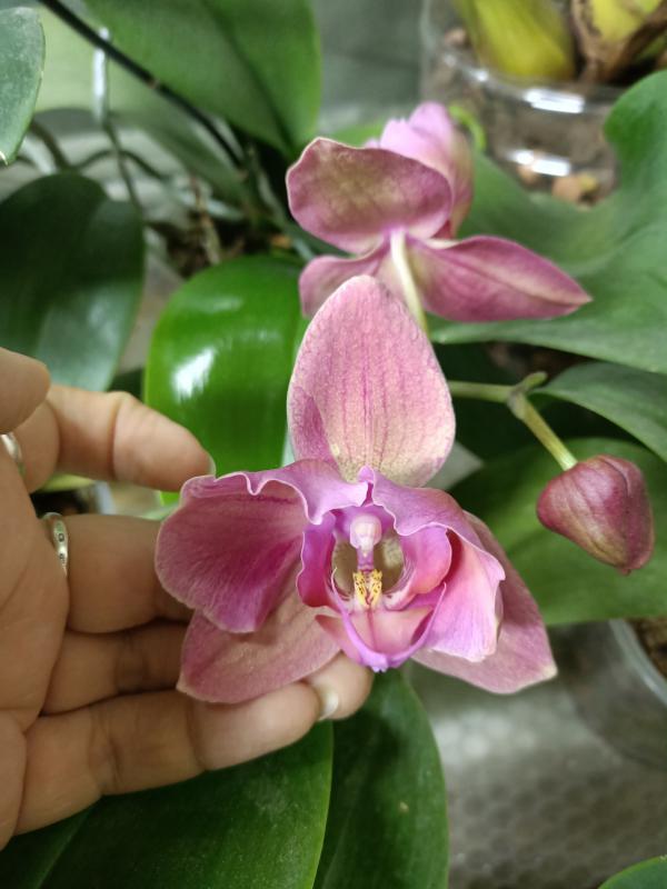 Да, я поставила ее в подъезде на подоконник на полдня. Сейчас многие распускаются,- хочу все показать. Живу в пятиэтажке, на последнем этаже, сами моем лестницы. Картин, правда нет, но чисто. Немного смущает температура,- в подъезде 17 градусов, а в квартире 22. Всегда каждую новую орхидею показываю соседям по площадке, срезанные цветы не дарю,- только орхидеи.