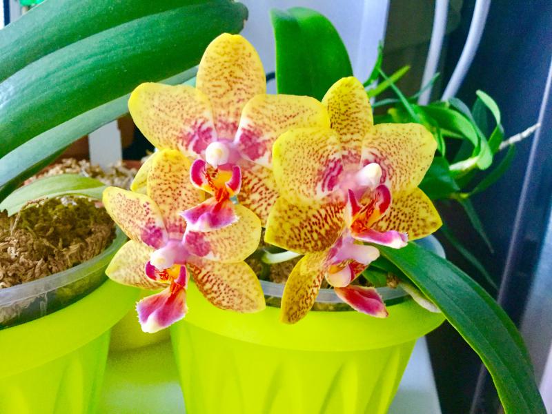 на фото он вместе с голландцем Phal. Yellow elf peloric (еще его называют Гриссини, Нина Квин0. Оба ароматные.