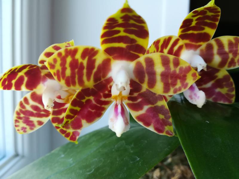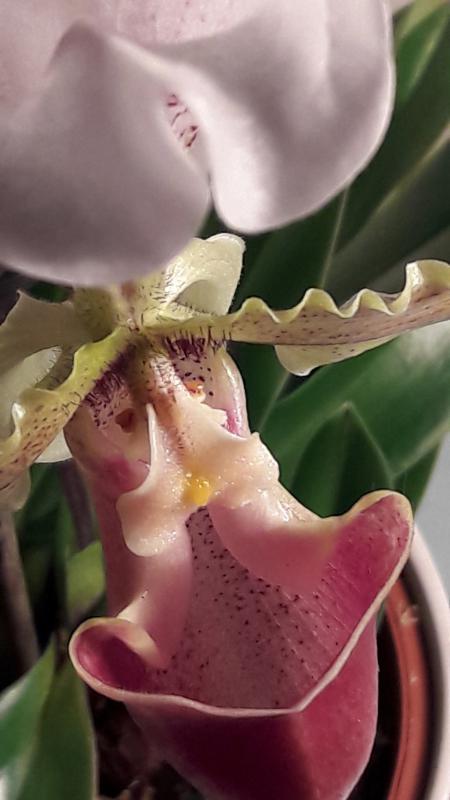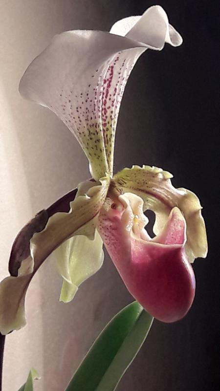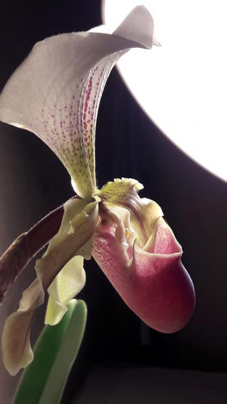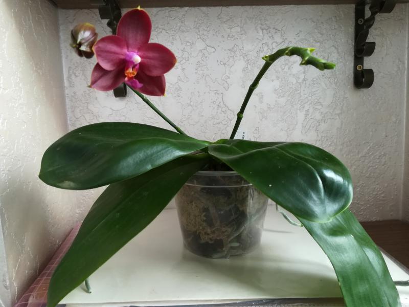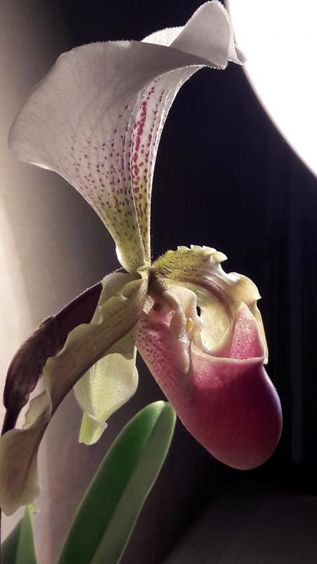 Paphiopedilum leeanum растил и растил розетки. Цветок появился только с одной.