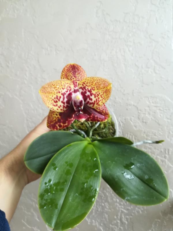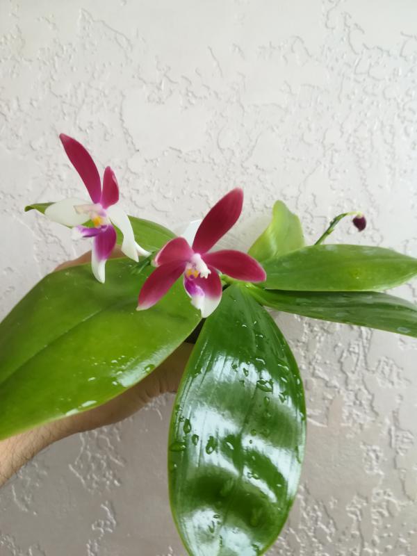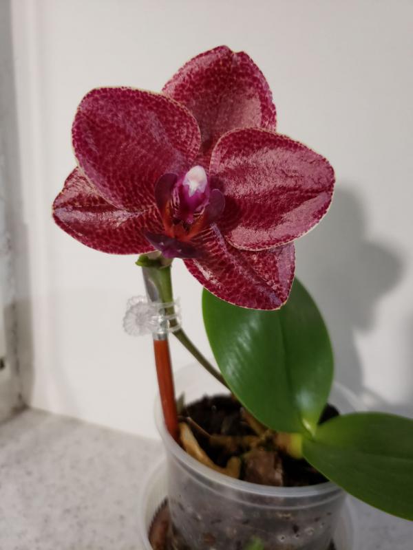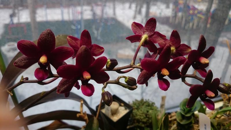 Dtps.Jim x Golden Peoker Black Bird -года два назад увидела на выставке орхидей в Тимирязевке. Очень понравился, заказала себе такой. У меня цветёт второй раз, цветонос разветвленный.