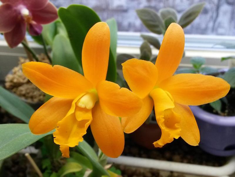 Зацвела каттлея Young-Min Orange 'Golden Satisfaction'.