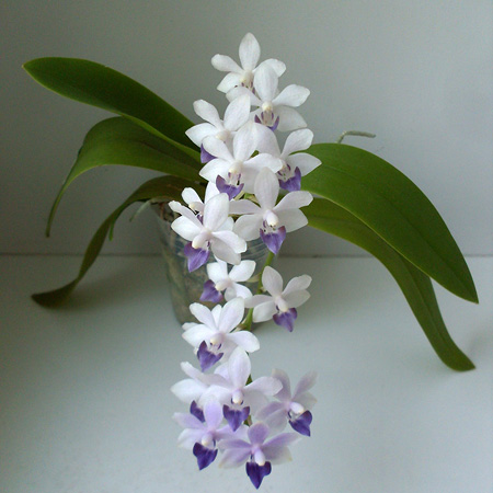 Водопадик из маленьких цветков выглядит очень мило и аккуратно. Несмотря на название сорта, цветки при раскрытии имеют всё-таки фиолетовый оттенок и со временем ещё выгорают.