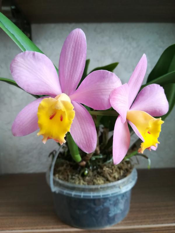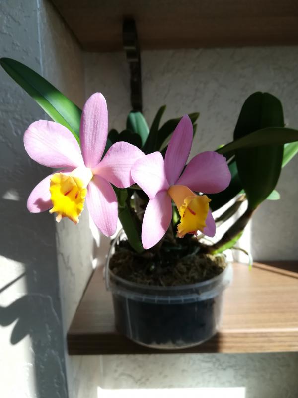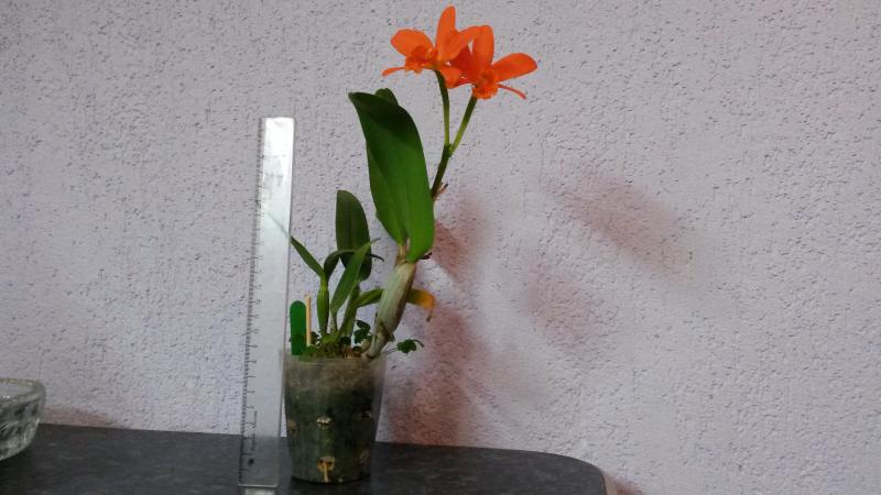 Подтверждаю, не капризная, т.к. это моя первая каттлея. На одной бульбе один лист, на другой два листа. Не знаю, как правильно обозначить. Высота с горшком 30 см. Цветок у меня 6 см в длину. Но может я что не так делала. Получила в июне 2018 от Мики. Она сразу пошла в рост и я не стала пересаживать. Отложила до весны. Аромат был вчера на солнце. Сейчас вечером не пахнет. Компактно растет. Фото целиком :) линейка 25 см