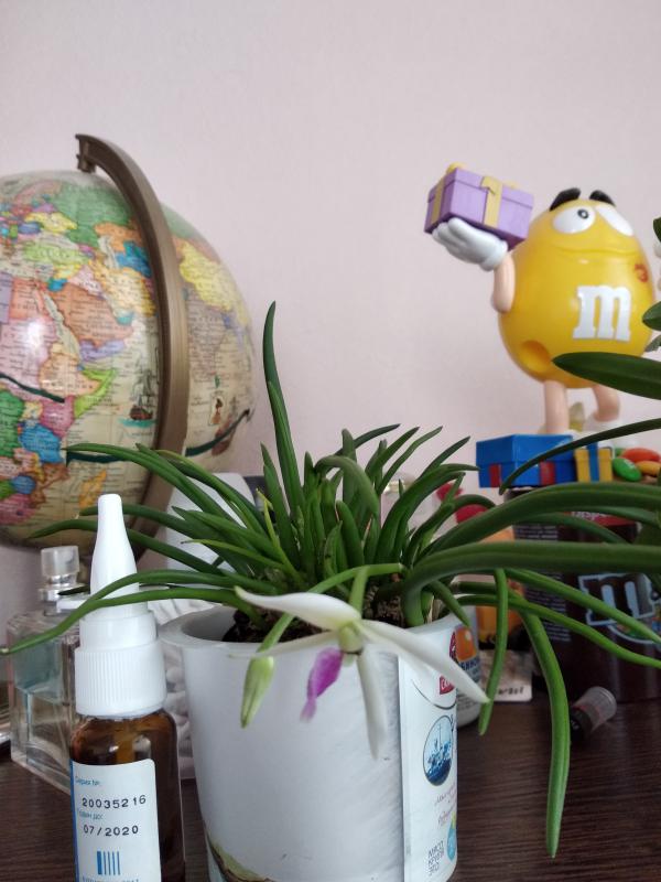 Это третье зацветшее растение из заказанных мною. Цветок прибыл ко мне в мае 2017 г. и выращивался на работе полностью под искусственным светом.
