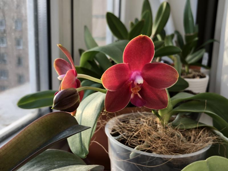 Phalaenopsis Tzu Chiang Sapphire 'Blue' стала второй цветущей орхидеей из заказанных мною. Её прислали в декабре 2017 года, через два с половиной месяца уже начал расти цветонос, потом второй, и в мае стали раскрываться бутоны.