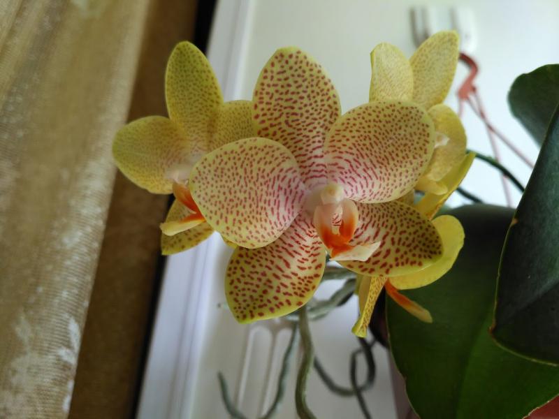 Вот ещё phal. Mituo Sun x phal (Chingher Buddha x Mituo Sun). Первое цветение, один цветочек - лаковый, красивый