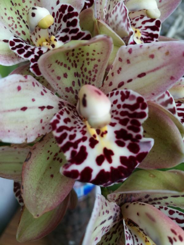 Приехал малыш, одна полноценная бульба. И эта бульба процвела, да еще как! Губа бархатная, блестящая, переливающаяся. А лепестки нежного кремово-зеленого цвета в бордовых разводах с веснушками. Именно они мне яйца лесных птичек напомнили. Знаете, они такие интересные, разноцветные и пестренькие. Кажется, что вылупится из них что-то волшебное.