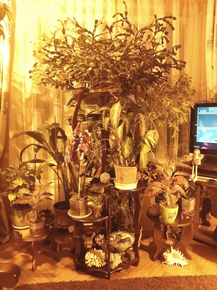 Помимо подоконников у меня ещё стойки внутри комнаты с разными растениями. Уже и к ним привинтила доп.корзинки от стоек-распорок на подоконник. Благо, их можно отдельно заказать, а хомуты в ОБИ купить. Освещение искажено-фитолампы работают 😋