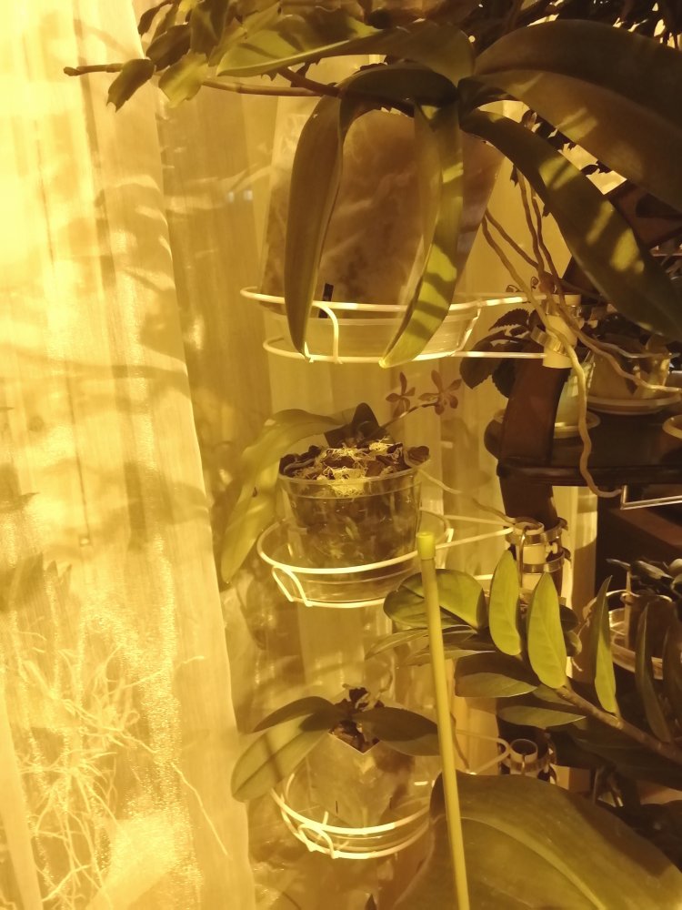 @The_Beatles, у меня давно некуда 😂 Подвешиваю на крючки к существующим стойкам. А ещё аглаонемы в пути 😇 Кстати, подвешенные на крючки получаются под наклоном в градусов 30-35. Заметила, что фаленопсисам это понравилось: листва вниз, цветоносы вверх и в стороны.