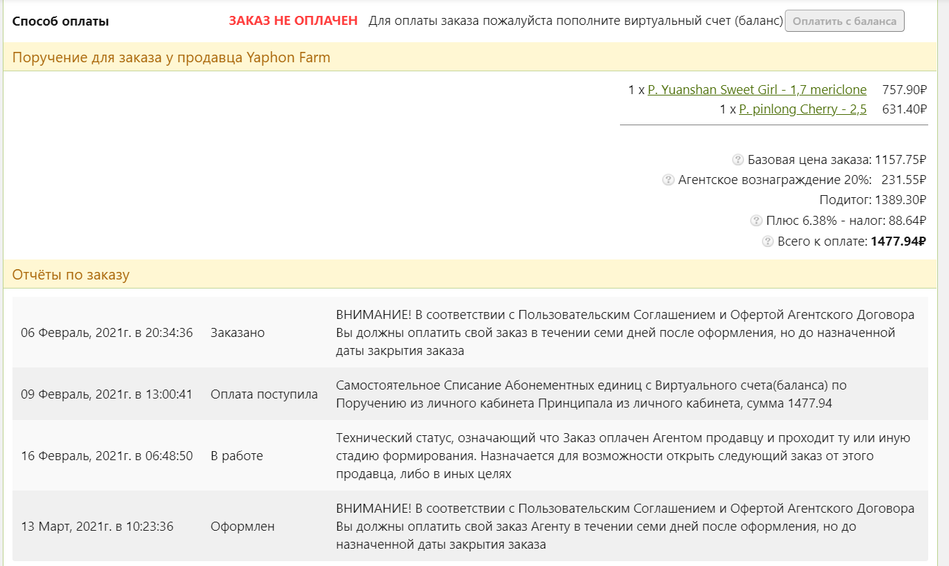 ВНИМАНИЕ! В соответствии с Пользовательским Cоглашением и Офертой Агентского Договора Вы должны оплатить свой заказ Агенту в течении семи дней после оформления, но до назначенной даты закрытия заказа